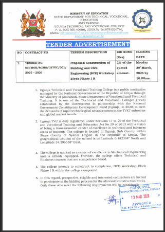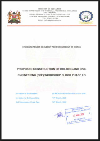 The college intends to construct to completion, BCE Workshop Block Phase I B within the college compound.